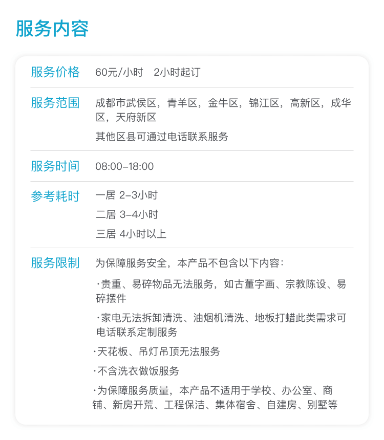 保潔時長:上門(mén)時間: